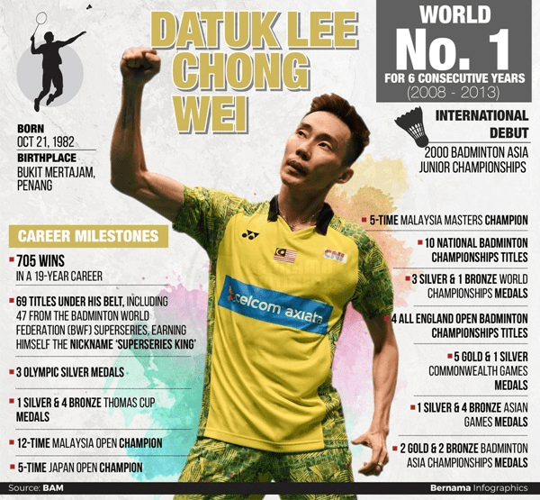 13 june 2019 · right · 713 wins, 135 losses. Lee chong wei (born 21 october 1982 in bagan serai, perak) is a malaysian chinese professional badminton player. He is the only man to have . As a singles player, lee was ranked first .